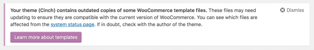 If you have a theme that has customized WooCommerce templates, it won’t be hard to tell if you have an outdated file. You’ll see something like this after an update: